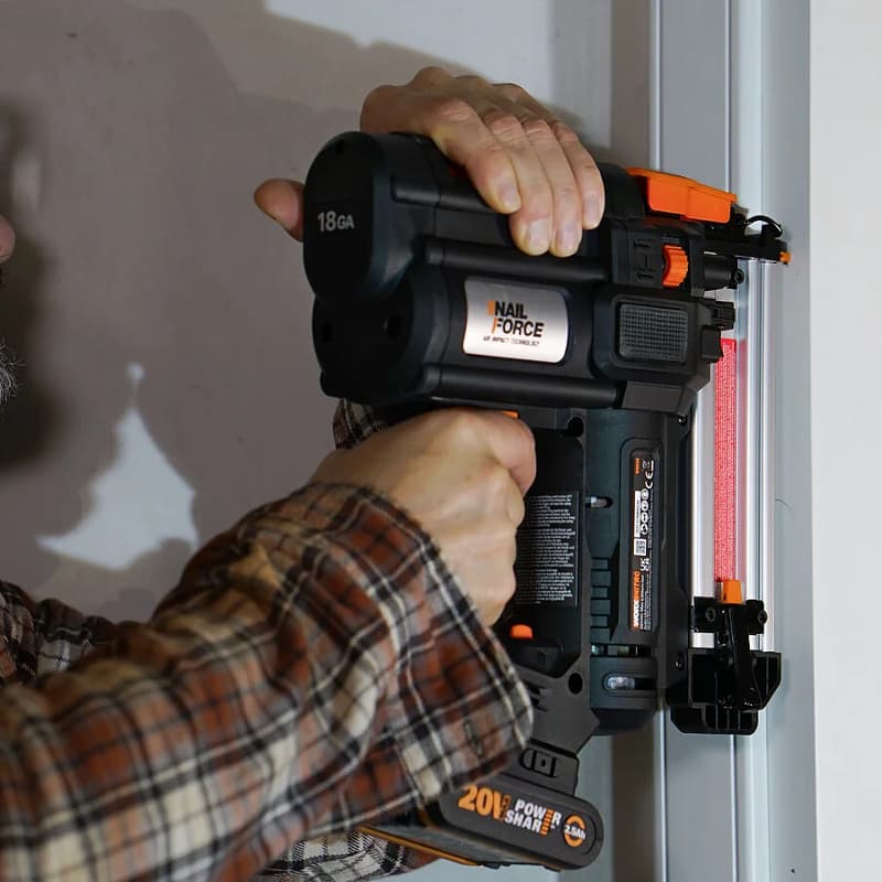 Одной из ключевых особенностей WX842.9 является возможность регулировки глубины забивания гвоздей в зависимости от твердости древесины, что делает его подходящим для работы с различными материалами. Пластиковая накладка на ударной части защищает поверхности от повреждений, что особенно важно при отделочных работах.