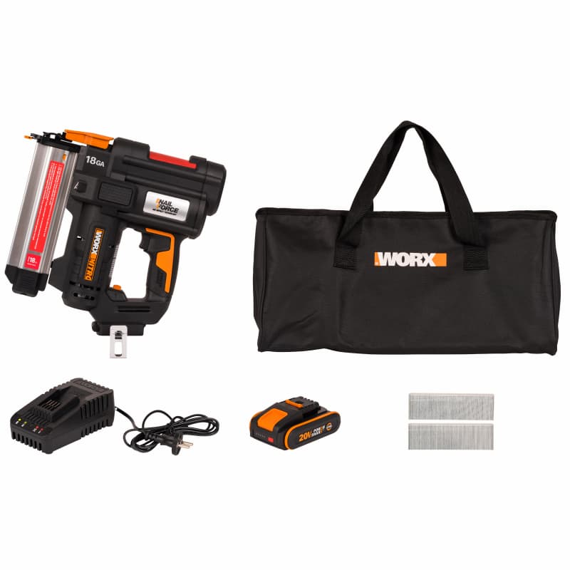 WORX 20V Гвоздезабивной пистолет аккумуляторный WX842, комплект с АКБ 2 Ah и ЗУ, сумка