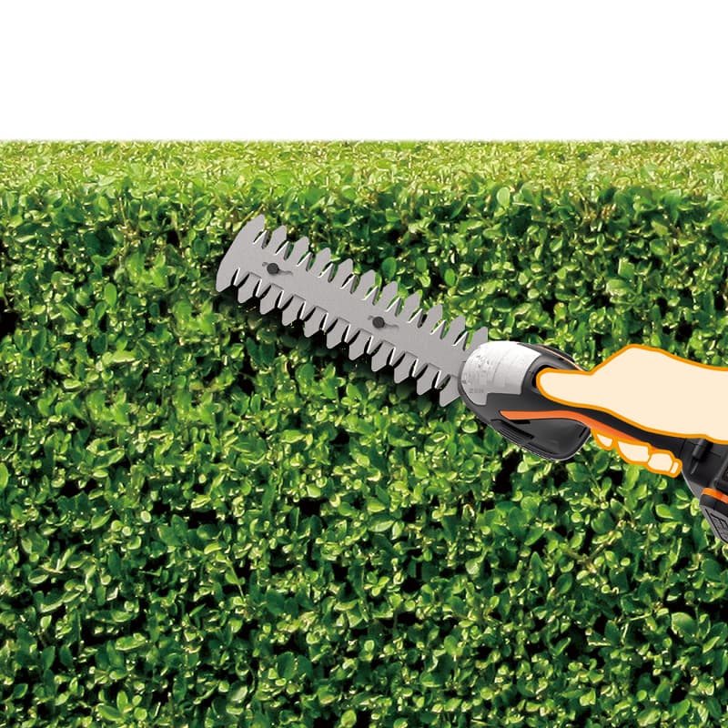 Ножницы для стрижки травы и кустарников аккумуляторные WORX WG801E.5; Аккумулятор Li-Ion емкостью 2 А*ч; Зарядное устройство WORX 20В 2А; 10 см лезвие для газона; 12 см лезвие для кустарников; 20 см лезвие для кустарников; Насадка для удаления сорняков; Коробка. -