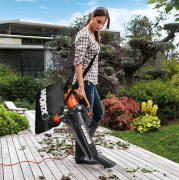 В линейке воздуходувов Worx есть электрический воздуходув-садовый пылесос WG505E 3000 Вт с мешком для сбора листьев и функцией мульчирования. Вы просто присоединяете специальный мешок для сбора листьев и молниеносно наводите красоту на вашем участке.